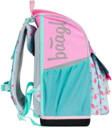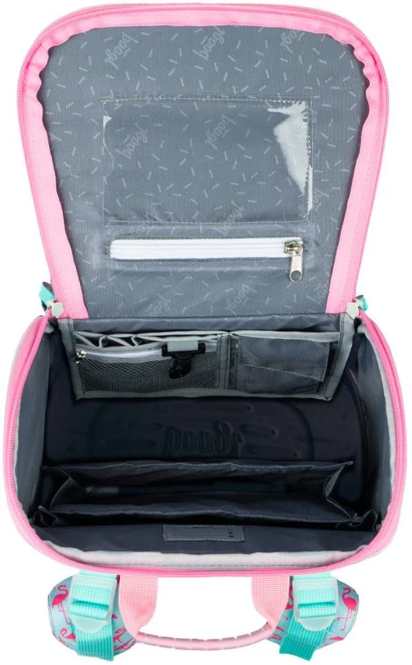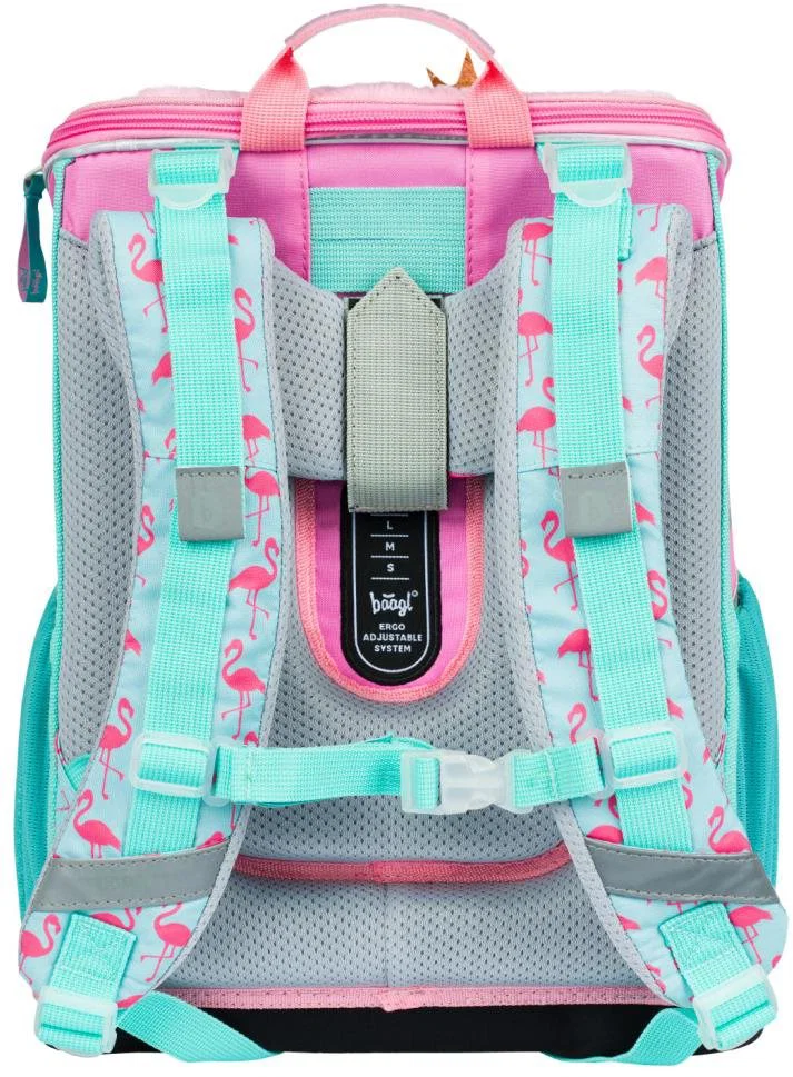 Školská aktovka českej značky Baagl Zippy Plameniak s príjemným plyšovým povrchom v ružovo-tyrkysovej farbe, vhodná pre žiakov 1.–2. triedy ZŠ. • Ergonomická školská aktovka s vystuženým telom, vhodná od 1. triedy ZŠ. • Posuvný chrbtový systém ERGO ADJUSTABLE SYSTEM umožňuje nastavenie optimálnej polohy popruhov vzhľadom na výšku dieťaťa. • Ergonomicky tvarovaný chrbát, plne nastaviteľné ramenné, prsné a bočné kompresné popruhy pre optimálne prispôsobenie postave. • Aktovka disponuje novým vyklápacím systémom otvárania, vďaka ktorému sa školák ľahšie dostane k svojim pomôckam priamo z lavice. • Vnútri aktovky je priehľadné vrecko na rozvrh a vnútorný organizér umožňujúci rovnomerné rozloženie hmotnosti, doplnený gumičkou na fixáciu. • Bočné vrecká z pevnej sieťoviny, ktoré sú vhodné pre jednu z našich fliaš na pitie . • Izolované priestranné predné vrecko so zapínaním na pracku. • Ľahká konštrukcia drží stabilný tvar aktovky, hmotnosť aktovky – 1 100 g. • Objem aktovky je 18 la nosnosť 6 kg. • Telo aktovky je vyrobené z pevného vodeodolného materiálu. • Dno aktovky je vyrobené z pevného materiálu, vďaka ktorému aktovka samostatne stojí. • Reflexné prvky pre bezpečnosť dieťaťa. • Aktovka je vybavená trendy plyšovým príveskom. • Aktovky z radu ZIPPY boli testované a certifikované v akreditovanom skúšobnom laboratóriu.