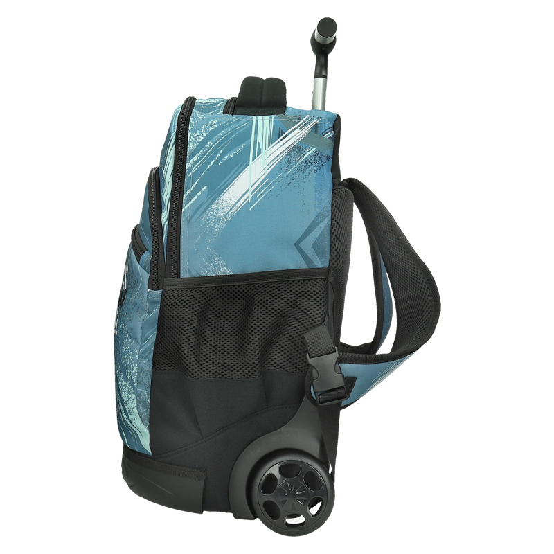 Ergonomická, pohodlná vysúvacia rúčka, vďaka ktorej možno batoh tlačiť pred sebou, alebo ho ťahať za sebou. Batoh je na spodku vybavený tichými kolieskami.