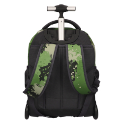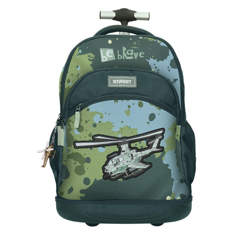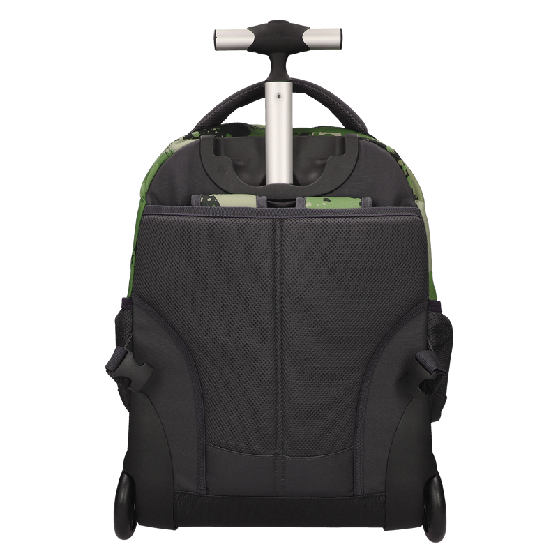 Ergonomická, pohodlná vysúvacia rúčka, vďaka ktorej možno batoh tlačiť pred sebou, alebo ho ťahať za sebou. Batoh je na spodku vybavený tichými kolieskami. Rozmer: 45x34x22cm.