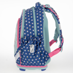 Skladá sa z 1 veľkej komory, kam sa pohodlne zmestia všetky školské potreby pre deti 1. stupňa ZŠ. V prednej časti batohu je jedno menšie vrecko pre uloženie drobnejších predmetov. Na bokoch batohu sú vrecká na zips na fľašu na pitie. Dno batohu je z pevného materiálu, chráni tým obsah pred prevrhnutím a vysypaním. Nosnosť batohu je 8kg. Objem: 27L. Rozmery: