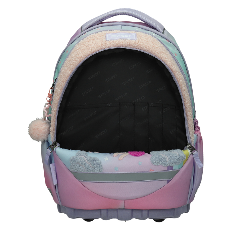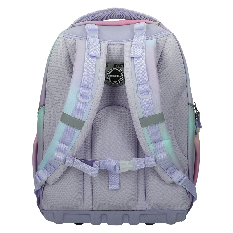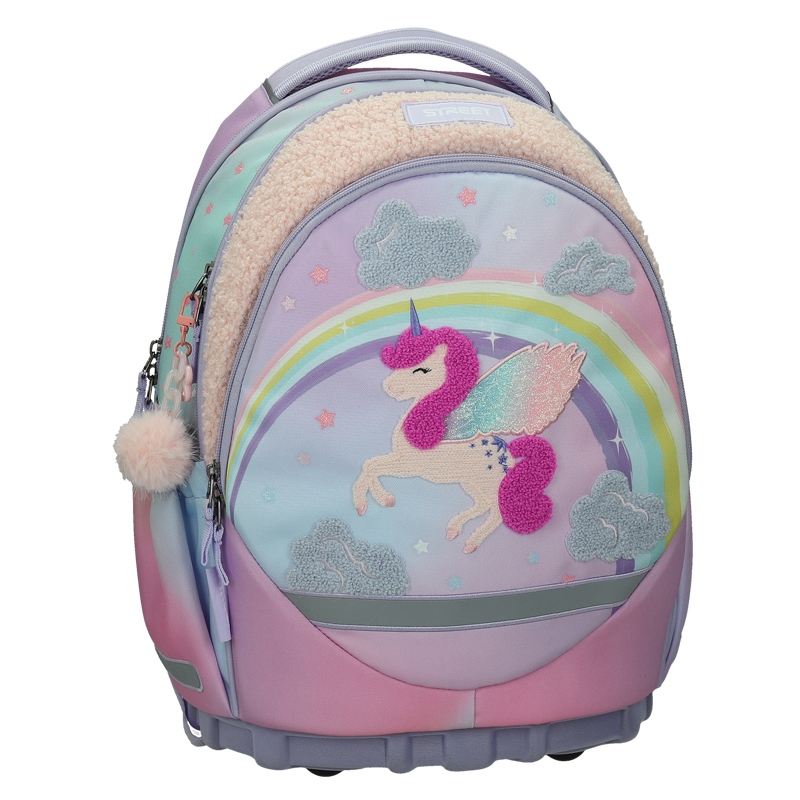 Ďalšou výhodou sú trojbodové nastaviteľné a veľmi komfortné ramenné popruhy. Keďže deti v tomto veku výrazne rastú, treba neustále nastavovať správnu veľkosť. Polstrovanie popruhov zamedzuje prípadnému zarývaniu do ramien a tvorbe odrenín. Pre väčší komfort odporúčame k aktovke prikúpiť aj hrudný popruh, ktorého účelom je správne držanie aktovky a narovnanie chrbtice.
