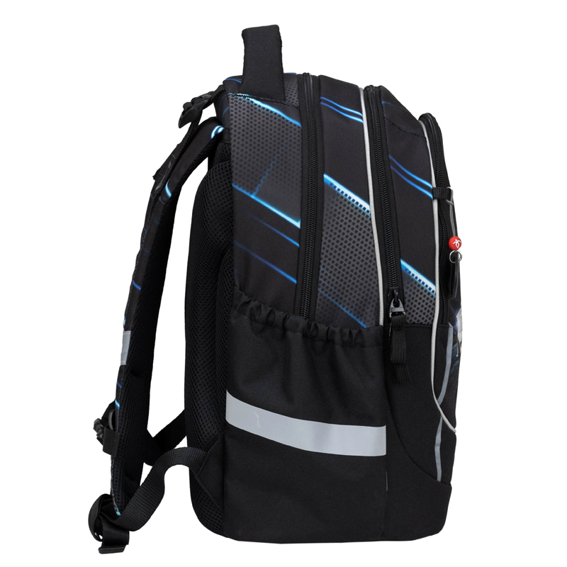 Batoh Leisure Plus je všestranný spoločník, vhodný do školy, na cestovanie, outdoorové aktivity aj šport. Je vyrobený z vysokokvalitných, pevných a vodeodolných materiálov, ktoré zaručujú jeho odolnosť a ochranu v akýchkoľvek podmienkach. Batoh obsahuje aj reflexné prvky pre zvýšenú bezpečnosť a štýlové motívy, ktoré oslovia mladých študentov. Táto kombinácia funkčnosti, odolnosti a štýlu z neho robí ideálnu voľbu pre aktívnych školákov, ktorí potrebujú spoľahlivý a moderný batoh na všetky svoje školské dobrodružstvá.