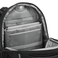 - veľký hlavný priečinok s polstrovanými priehradkami pre tablet a notebook, priehradky tlmia nárazy vďaka zavesenému prevedeniu (nedotýkajú sa dna ruksaku)