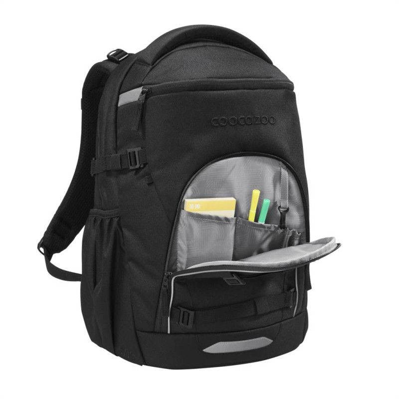 - odnímateľné upevňovacie popruhy na prednej strane ruksaku pre pripevnenie bundy, helmy alebo skateboardu