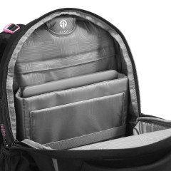 - veľký hlavný priečinok s polstrovanými priehradkami pre tablet a notebook, priehradky tlmia nárazy vďaka zavesenému prevedeniu (nedotýkajú sa dna ruksaku)
