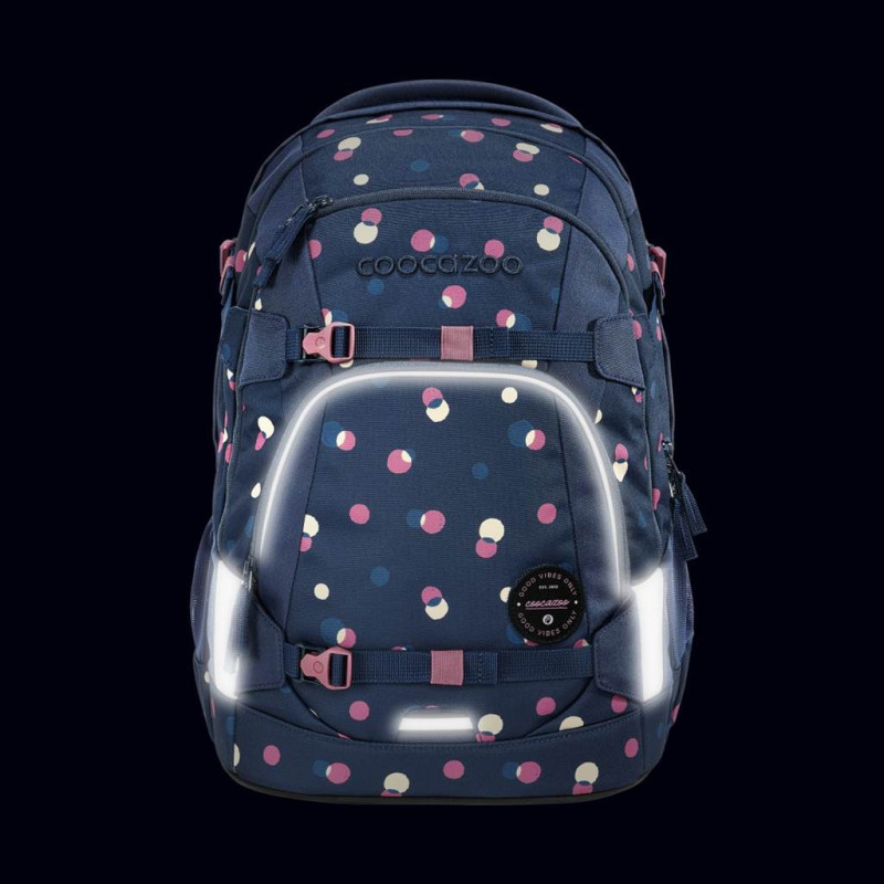 - 2 upevňovací pásky na přední straně batohu pro upevnění např. skateboardu, bundy nebo helmy nebo reflexních pásků