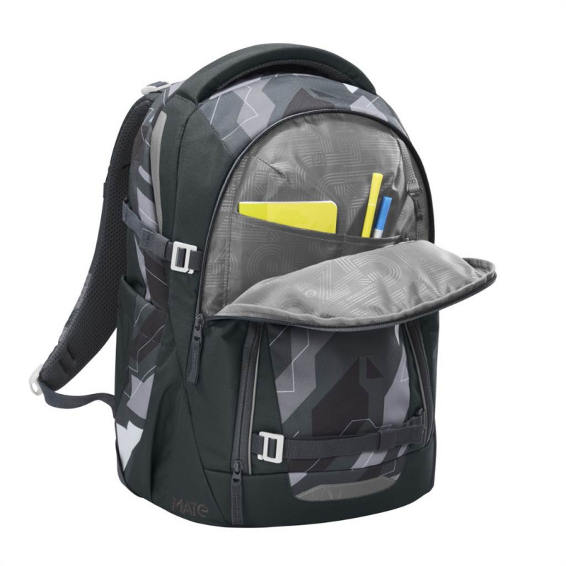 - odnímateľné upevňovacie popruhy na prednej strane ruksaku pre pripevnenie bundy, helmy alebo skateboardu