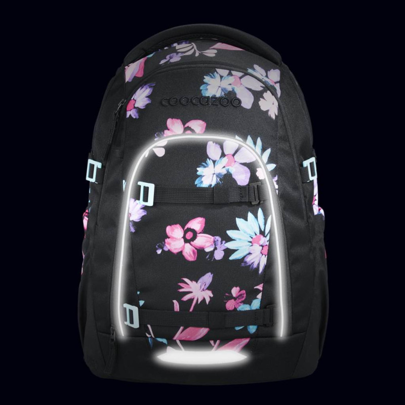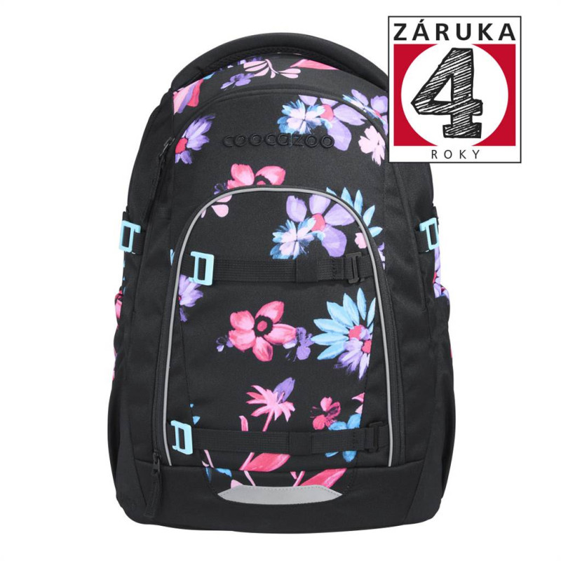 - odnímateľné upevňovacie popruhy na prednej strane ruksaku pre pripevnenie bundy, helmy alebo skateboardu