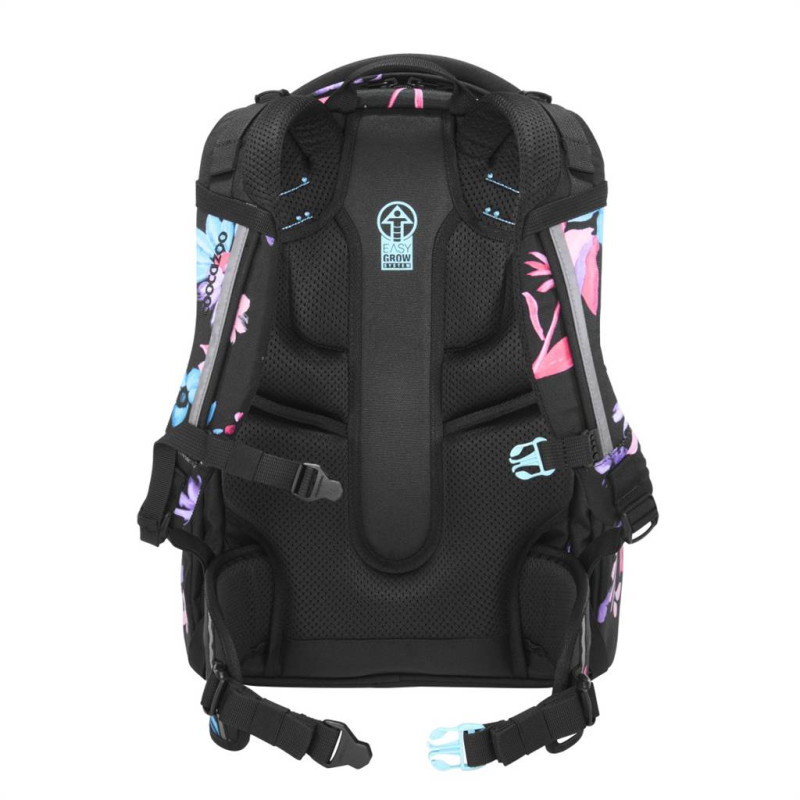 - veľký hlavný priečinok s priehradkou na knihy a odnímateľnou priehradkou, vrecko s organizérom a predné vrecko napr. na desiatovú krabičku