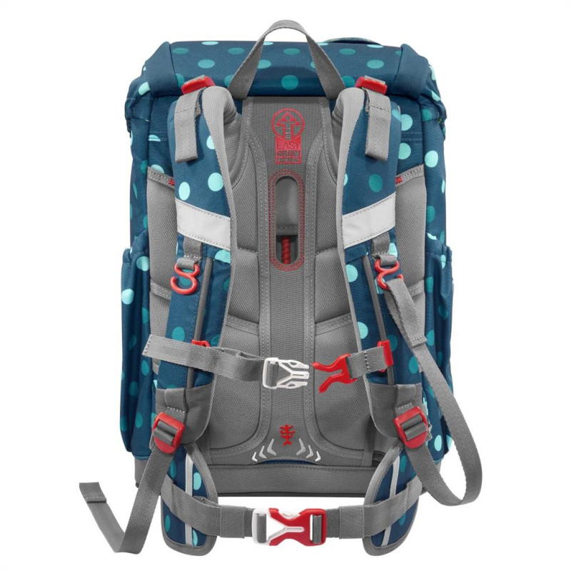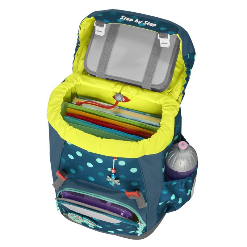 - školský ruksak Step by Step Grade je flexibilný ruksak v športovom dizajne, príjemný na nosenie - hmotnosť ruksaku je iba 950 g, vhodný pre deti už od 100 cm výšky dieťaťa - ekologický ruksak, vyrobený zo 100% recyklovaných PET fliaš (na 1 ruksak sa spotrebovalo 37 fliaš) - impregnácia PFC Free - používame impregnáciu bez škodlivých PFC chemikálií, naša impregnácia je šetrná, vyrobená na vodnej báze - školský ruksak, ktorý sa neprevracia a perfektne sedí na chrbte vďaka plynulému výškovému nastaveniu ramenných popruhov - pomocou otočného mechanizmu vo vnútri ruksaku sa zaistí presné nastavenie ramenných popruhov priamo na chrbte dieťaťa od 1. po 4. triedu - vymeniteľné 3D obrázky - 1 ks na veku ruksaku, 1 ks na prednom vrecku a ozdobná šnúrka na prednej strane ruksaku - ultra ľahká ergonomicky tvarovaná chrbtová časť s mäkkým priedušným polstrovaním, sklolaminátová konštrukcia - polstrované nastaviteľné popruhy na ramená v tvare S (nezarezávajú sa do ramien, dobre a pevne sedia a ľahko sa s nimi manipuluje) - háčiky na popruh pre uchytenie koncov popruhu - doťahovacie pásky na ramennom popruhu, slúžia k dokonalému priľnutiu ruksaku k chrbtu dieťaťa - DOKONALÉ POLSTROVANIE CHRBTOVEJ ČASTI A VÝŠKOVO A DĹŽKOVO NASTAVITEĽNÉ POLSTROVANÉ POPRUHY ZARUČUJÚ ZDRAVÝ VÝVOJ CHRBTA DIEŤAŤA, PRETO ŠKOLSKÉ AKTOVKY Step by Step ZÍSKALI CERTIFIKÁT AGR - odnímateľný výškovo nastaviteľný hrudný popruh, značková pracka YKK - odnímateľný bedrový popruh pre optimálne rozloženie hmotnosti ruksaku medzi ramená a bedrá a vycentrovanie ruksaku doprostred chrbta - reflexné plochy na všetkých viditeľných stranách ruksaku značky ORALITE (na prednej strane, bokoch a ramenných popruhoch), dostatočná bezpečnosť v šere a za tmy - pútko na zavesenie ruksaku - zatváranie na dve magnetické pracky, ľahké otváranie a zatváranie ruksaku - magnetické zatváranie je výškovo nastaviteľné, vďaka tomu je možné zväčšiť objem ruksaku - izolované predné vrecko (pre studené alebo teplé jedlo a nápoje) - bočné vrecká na fľašky s pitím s otvorom v dolnej časti; ak do vrecka vytečie tekutina, odtečie otvorom skôr než sa vsiakne do hlavného priečinku a poškodí učebné pomôcky - stabilné dno ruksaku s nôžkami pre lepšiu stabilitu, ochrana pred vlhkom a špinou - možnosť objednať pršiplášť - priestranný hlavný priečinok s vnútorným vreckom, ktorý je určený pre ťažšie predmety (napr. učebnice), zaistí sa tak rovnomerné rozloženie hmotnosti - gumičky vo veku pre umiestnenie peračníka, zaťaží ruksak z vrchu, chráni tak chrbát a zároveň šetrí priestor v ruksaku - objem: 22 l, hmotnosť: cca. 950 g, nosnosť: 7 kg, vonkajšie rozmery: h. 20 x š. 28 x v. 41 cm - PREDĹŽENÁ ZÁRUKA 4 ROKY
