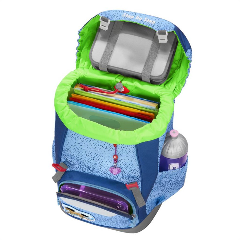 - školský ruksak Step by Step Grade je flexibilný ruksak v športovom dizajne, príjemný na nosenie - hmotnosť ruksaku je iba 950 g, vhodný pre deti už od 100 cm výšky dieťaťa - ekologický ruksak, vyrobený zo 100% recyklovaných PET fliaš (na 1 ruksak sa spotrebovalo 37 fliaš) - impregnácia PFC Free - používame impregnáciu bez škodlivých PFC chemikálií, naša impregnácia je šetrná, vyrobená na vodnej báze - školský ruksak, ktorý sa neprevracia a perfektne sedí na chrbte vďaka plynulému výškovému nastaveniu ramenných popruhov - pomocou otočného mechanizmu vo vnútri ruksaku sa zaistí presné nastavenie ramenných popruhov priamo na chrbte dieťaťa od 1. po 4. triedu - vymeniteľné 3D obrázky - 1 ks na veku ruksaku, 1 ks na prednom vrecku a ozdobná šnúrka na prednej strane ruksaku - ultra ľahká ergonomicky tvarovaná chrbtová časť s mäkkým priedušným polstrovaním, sklolaminátová konštrukcia - polstrované nastaviteľné popruhy na ramená v tvare S (nezarezávajú sa do ramien, dobre a pevne sedia a ľahko sa s nimi manipuluje) - háčiky na popruh pre uchytenie koncov popruhu - doťahovacie pásky na ramennom popruhu, slúžia k dokonalému priľnutiu ruksaku k chrbtu dieťaťa - DOKONALÉ POLSTROVANIE CHRBTOVEJ ČASTI A VÝŠKOVO A DĹŽKOVO NASTAVITEĽNÉ POLSTROVANÉ POPRUHY ZARUČUJÚ ZDRAVÝ VÝVOJ CHRBTA DIEŤAŤA, PRETO ŠKOLSKÉ AKTOVKY Step by Step ZÍSKALI CERTIFIKÁT AGR - odnímateľný výškovo nastaviteľný hrudný popruh, značková pracka YKK - odnímateľný bedrový popruh pre optimálne rozloženie hmotnosti ruksaku medzi ramená a bedrá a vycentrovanie ruksaku doprostred chrbta - reflexné plochy na všetkých viditeľných stranách ruksaku značky ORALITE (na prednej strane, bokoch a ramenných popruhoch), dostatočná bezpečnosť v šere a za tmy - pútko na zavesenie ruksaku - zatváranie na dve magnetické pracky, ľahké otváranie a zatváranie ruksaku - magnetické zatváranie je výškovo nastaviteľné, vďaka tomu je možné zväčšiť objem ruksaku - izolované predné vrecko (pre studené alebo teplé jedlo a nápoje) - bočné vrecká na fľašky s pitím s otvorom v dolnej časti; ak do vrecka vytečie tekutina, odtečie otvorom skôr než sa vsiakne do hlavného priečinku a poškodí učebné pomôcky - stabilné dno ruksaku s nôžkami pre lepšiu stabilitu, ochrana pred vlhkom a špinou - možnosť objednať pršiplášť - priestranný hlavný priečinok s vnútorným vreckom, ktorý je určený pre ťažšie predmety (napr. učebnice), zaistí sa tak rovnomerné rozloženie hmotnosti - gumičky vo veku pre umiestnenie peračníka, zaťaží ruksak z vrchu, chráni tak chrbát a zároveň šetrí priestor v ruksaku - objem: 22 l, hmotnosť: cca. 950 g, nosnosť: 7 kg, vonkajšie rozmery: h. 20 x š. 28 x v. 41 cm - PREDĹŽENÁ ZÁRUKA 4 ROKY