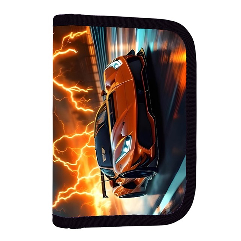 Prázdny jednoduchý peračník s jednou klopou,s gumovými úchytmi na ceruzky a perá, vreckom na suchý zips vhodným na peniaze, gumu a prepážkou s priehľadnou fóliou a rozvrhom hodín. Výška 20,0 cm