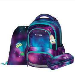 Trojdielny školský set sa skladá zo školskej aktovky Oxybag Premium , jednoposchodového prázdneho peračníka, viacúčelového vrecka na prezúvky.