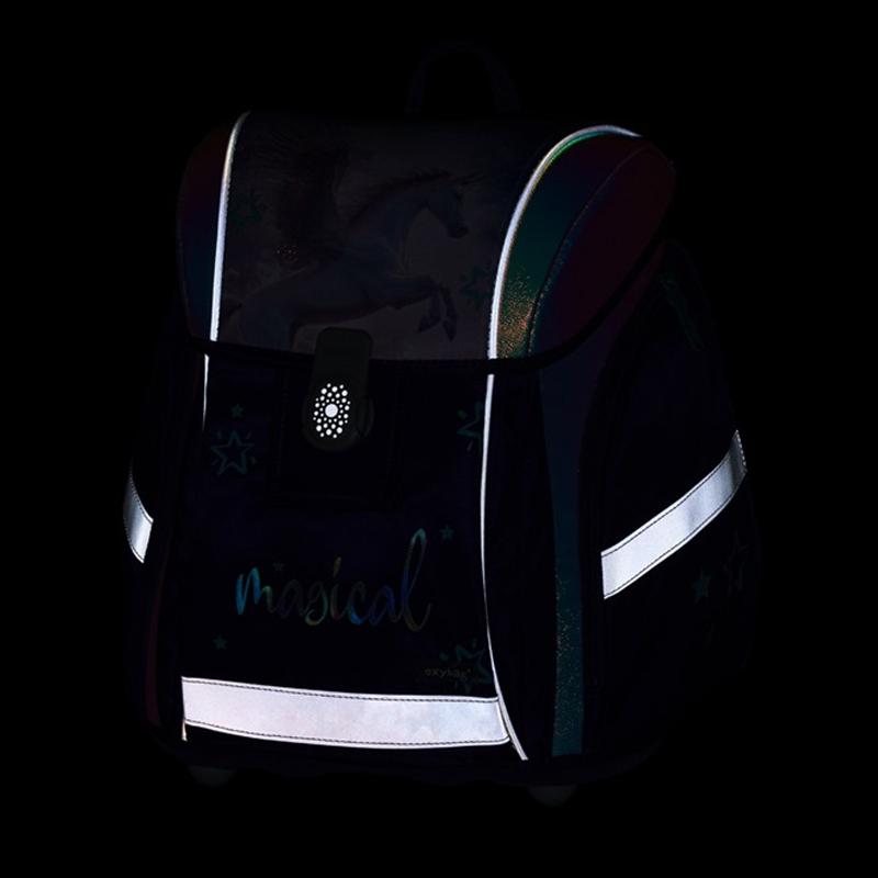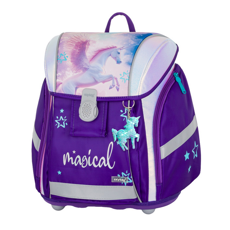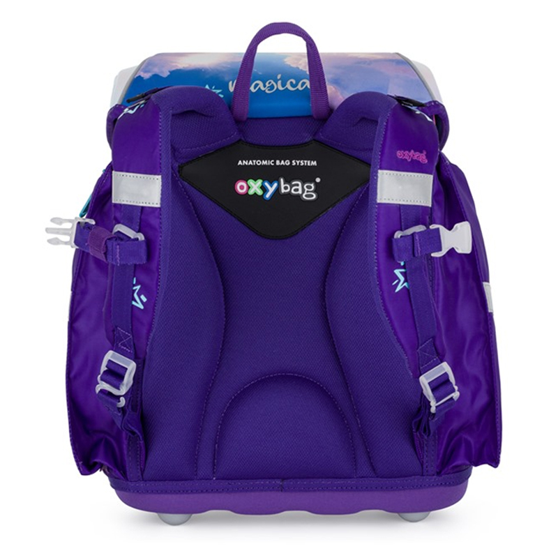 Školská aktovka Premium pre dievčatá je vhodná i pre drobnejšie prváčky. Aktovky OXYBAG sú výnimočné svojimi originálnymi licenčnými a nelicenčnými motívmi a prvákom na chrbte pekne sedia. Majú anatomicky tvarovaný chrbát a širšie mäkké polstrované ramenné popruhy, ktoré sú tvarovo prispôsobené postave detí. Popruhy tak lepšie sedia k ramenám a pomôžu ich rovnomerne zaťažiť. Polstrovanie zadnej časti je z príjemného priedušného materiálu a svojím tvarom umožňuje dostatočné odvetrávanie. Dieťa se tak pod batohom len tak nespotí. Bezpečnosť detí je podporená reflexnými prvkami zo všetkých strán vrátanie reflexného prvku na uzatváraní školskej tašky.