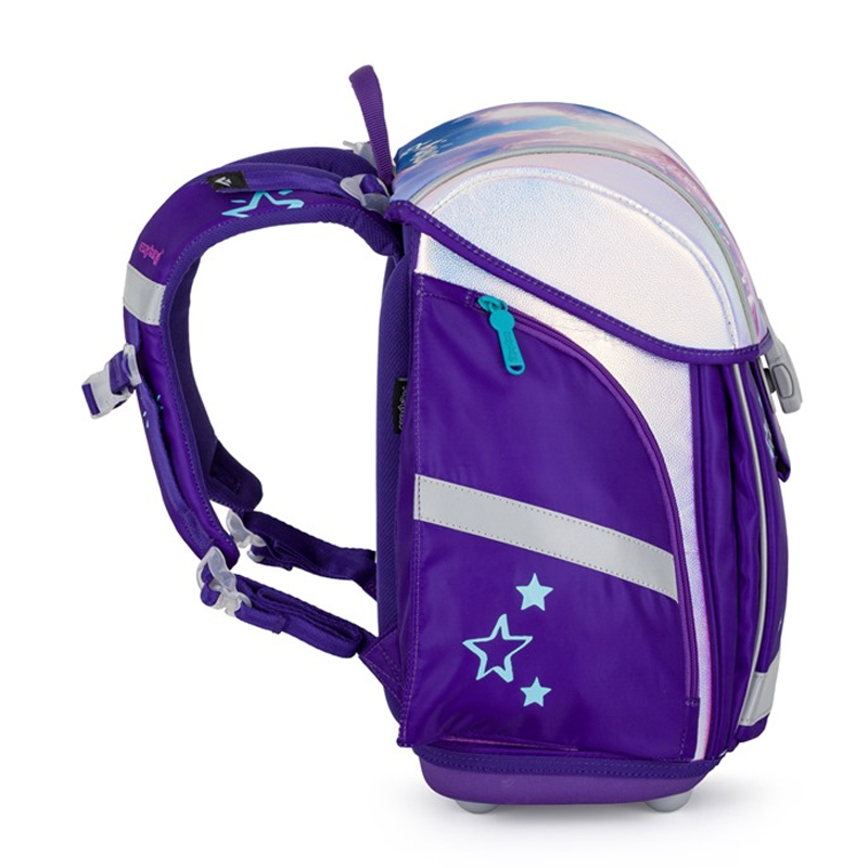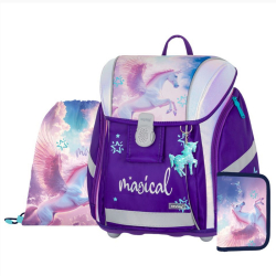 Školský set – aktovka, peračník a vrecko oxybag určený dievčatám a chlapcom vo veku 6 -10 rokov, teda prvého stupňa základnej školy, pre deti od výšky 121cm. Ponúka kvalitný priestor na školské potreby aj odľahčenú konštrukciu pre pohodlnejšie nosenie. Vďaka špeciálnemu materiálu váži taška menej ako 970 gramov.