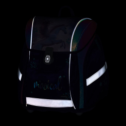 Reflexné pásiky vpredu, na bokoch aj na ramenách sú najmä pre maximálnu bezpečnosť dieťaťa v zlých podmienkach viditeľnosti. Školská taška je vyrobená z vodotesného materiálu.