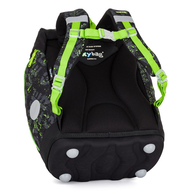 Skladá sa z 1 veľkej komory, kam sa pohodlne zmestia všetky školské potreby pre deti 1. stupňa ZŠ. V prednej časti batohu je jedno menšie vrecko pre uloženie drobnejších predmetov. Na bokoch batohu sú vrecká na zips na fľašu na pitie. Dno batohu je z pevného materiálu, chráni tým obsah pred prevrhnutím a vysypaním. Nosnosť batohu je 8kg. Objem: 27L. Rozmery:
