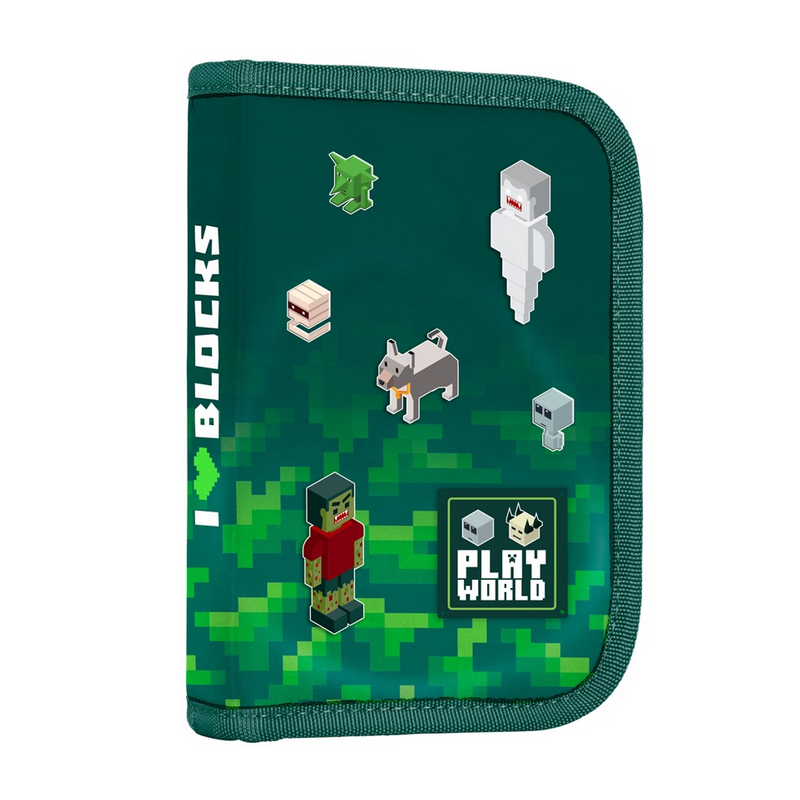 Prázdny jednoduchý peračník s jednou klopou,s gumovými úchytmi na ceruzky a perá, vreckom na suchý zips vhodným na peniaze, gumu a prepážkou s priehľadnou fóliou a rozvrhom hodín. Výška 20,0 cm