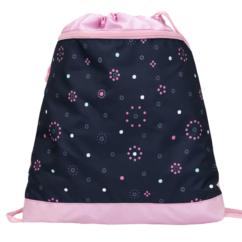 Vrecko sa sťahuje pomocou šnúrok, ktoré vedú cez celú zadnú časť a dá sa nosiť na chrbte alebo na ramene. Je vhodné na prezuvky alebo aj na oblečenie na telesnú výchovu alebo na každodenné nosenie. Rozmer vrecúška: 43 x 45 cm.