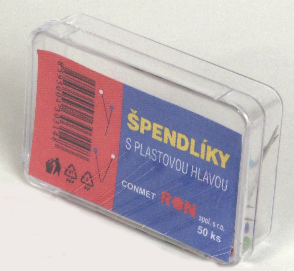 Špendlíky RON s farebnou hlavičkou 50ks, poniklované s plastovou farebnou hlavičkou o priemere 30 mm, balené v plastovej krabičke. Balenie: 12ks.