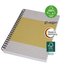 Plne vegánsky zošit z prírodných materiálov s moderným vzhľadom a mäkkou obálkou.