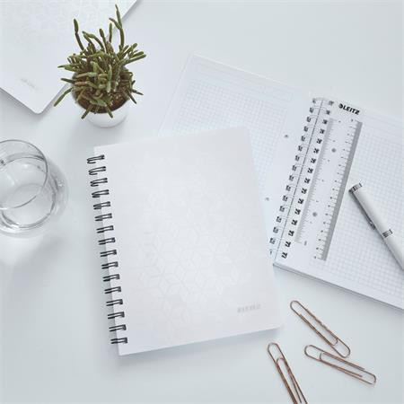 Špirálový zošit, A5, štvorčekový, 80 listov, LEITZ "Wow", biela