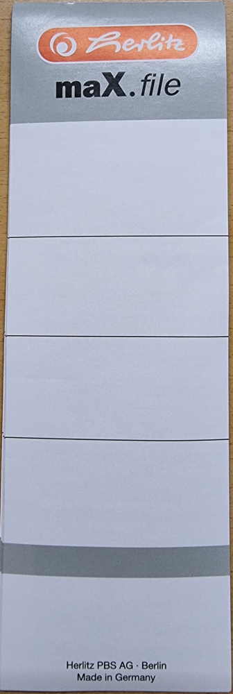 Samolepiace biele štítky 6 x 19 cm pre pákové poradače so šírkou chrbta 80 mm. Balenie 10 ks v sáčku.