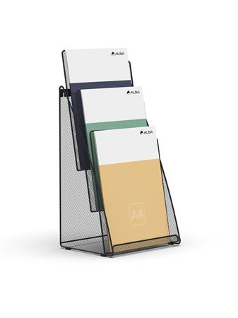 Stojan na prospekty, drôtený, stolový, vertikálny, A4, 3 priehradky, ALBA, čierny