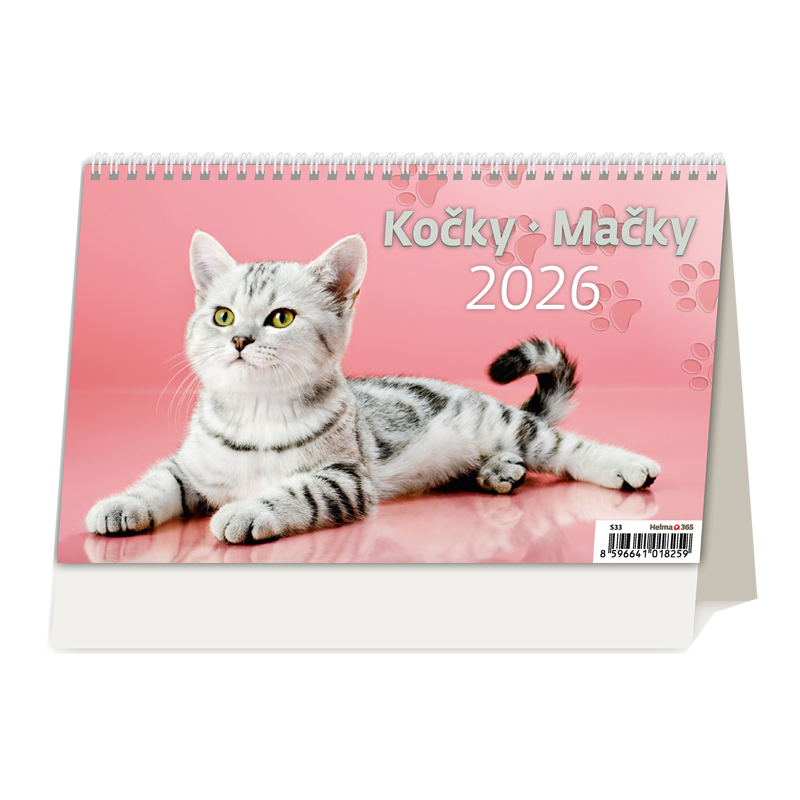 Formát kalendára: 22,6 x 13,9 cm • Kalendárium: české/slovenské týždenné riadkové • Počet strán kalendára: 58 + 2 • Stojanček: so zámkom • Priestor na potlač: 22,6 x 3 cm • + 365 mačacích mien