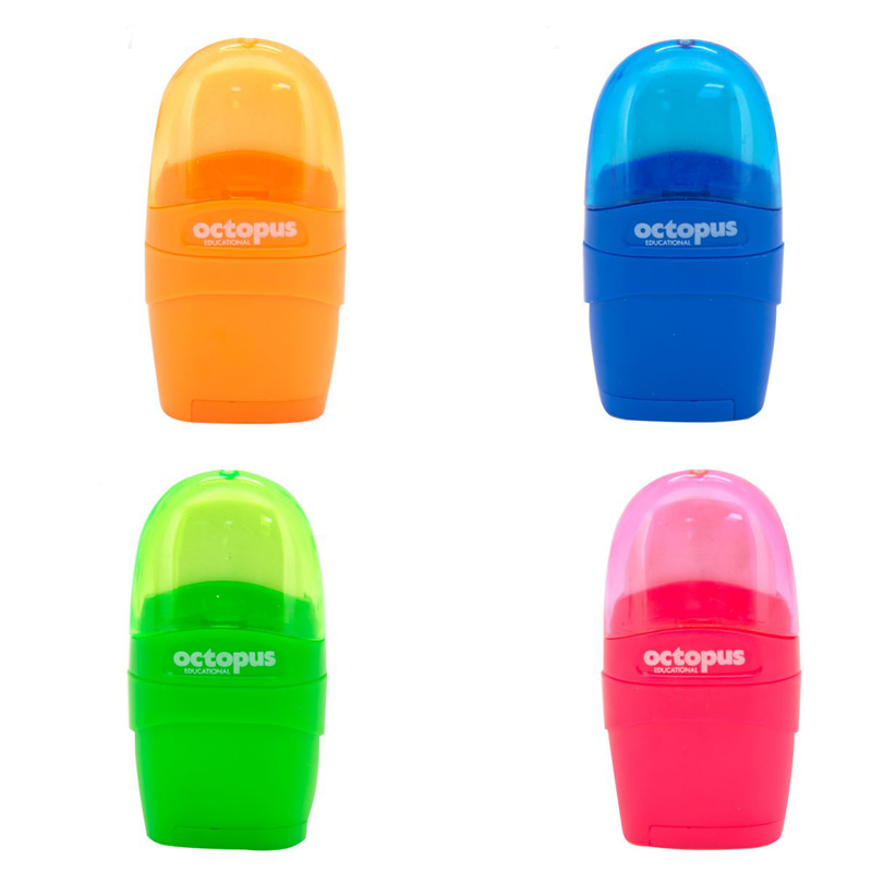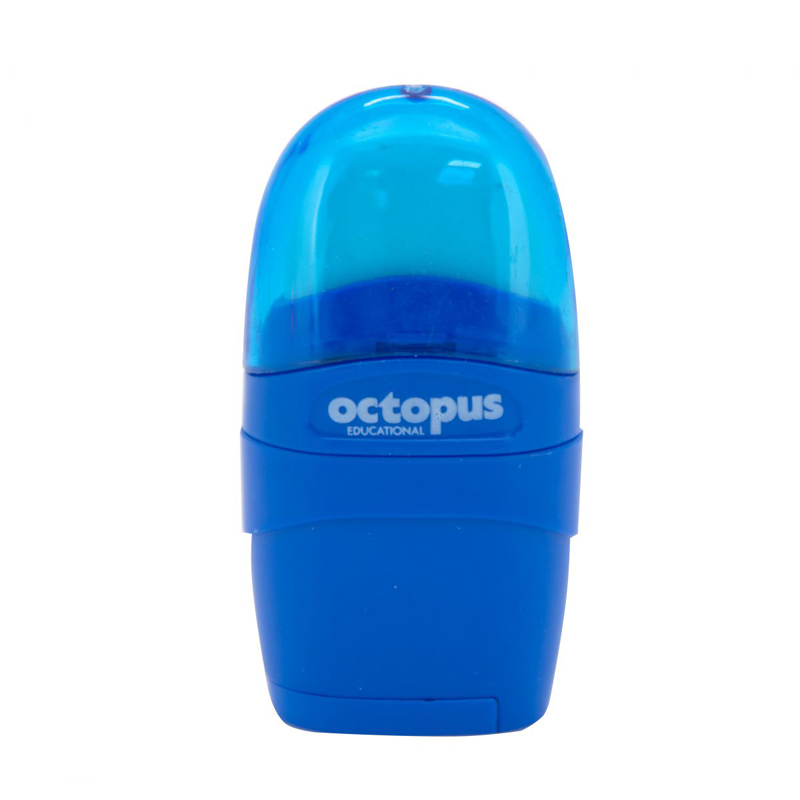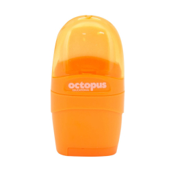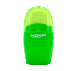 Strúhadlo Octopus Libra. Vrchná časť obsahuje gumu a priehľadný kryt. Spodná časť obsahuje 1 strúhadlo na ceruzky a pastelky štandardnej hrúbky. Rozmery 7 x 3,6 x 2,4 cm.
