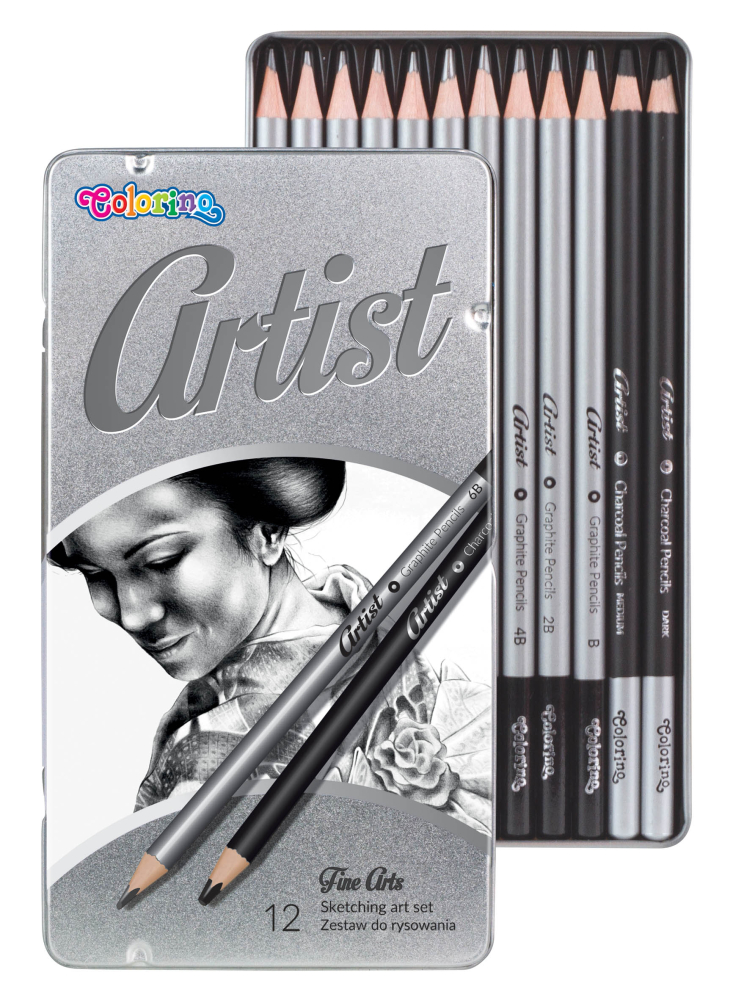 Základná súprava drevených grafitových ceruziek a kresliacich uhľov vysokej kvality. 10 rôznych tvrdostí ceruziek poteší nadšených umelcov pri skicovaní a kreslení. Praktická kovová škatuľka uľahčujúca prenášanie. Vhodné ako darček. okrúhle