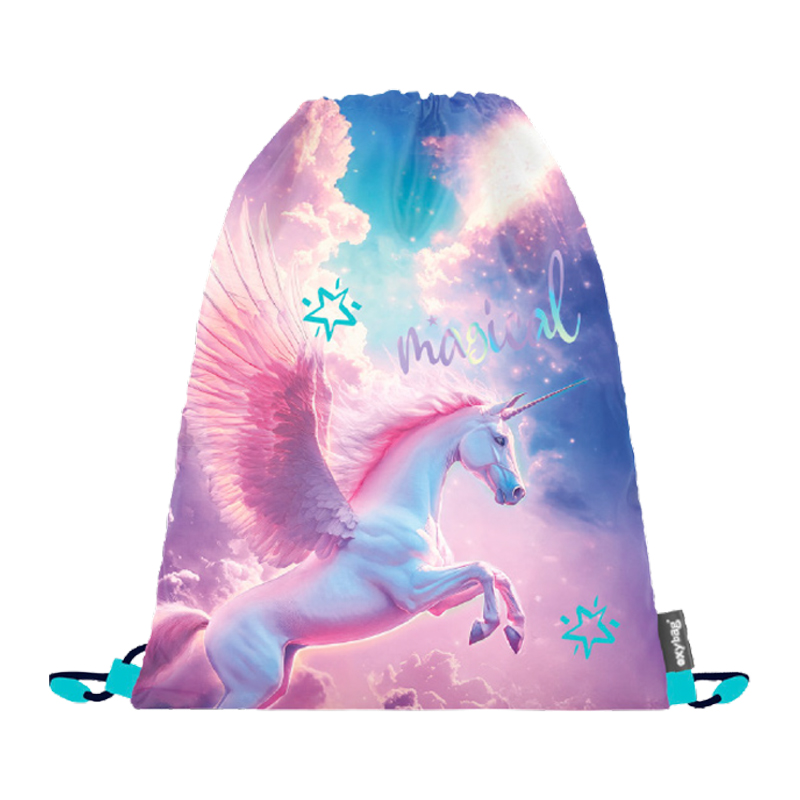 Praktická taška na obuv alebo na telesnú výchovu. Vrecko sa sťahuje pomocou šnúrok, ktoré vedú cez celú zadnú časť a dá sa nosiť na chrbte alebo na ramene.