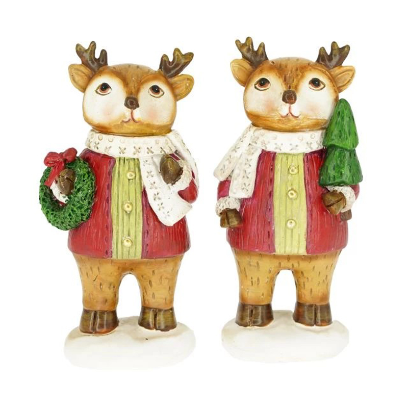 Dekoračná vianočná ozdoba - jeleň so stromčekom alebo s veniecom. Farba: hnedo-červená. Materiál: polyresin. Rozmer: 5,5x4,5x12,5 cm. Motív sa nedá vybrať, posielame podľa skladovej dostupnosti.