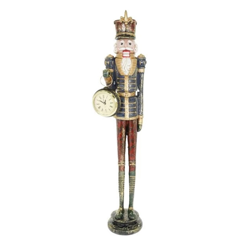 Dekoračná vianočná ozdoba - luskáčik s hodinkami . Materiál: polyresin. Rozmer: 12x10x52 cm.