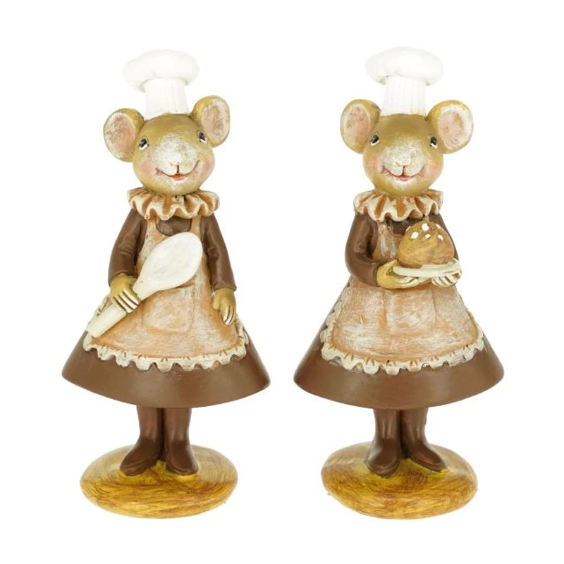 Dekoračná vianočná ozdoba - myška stojaca s lyžicou alebo s koláčikom. Farba: hnedo-béžová. Materiál: polyresin. Rozmer: 6x4,5x13 cm. Motív sa nedá vybrať, posielame podľa skladovej dostupnosti.