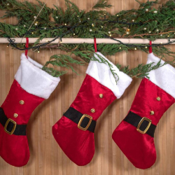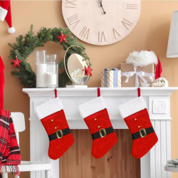 Vianočná mikulášska ponožka na darčeky s rolničkami. Praktické pútko na zavesenie. Výška 51cm. Balené po 10ks, cena za 1ks.