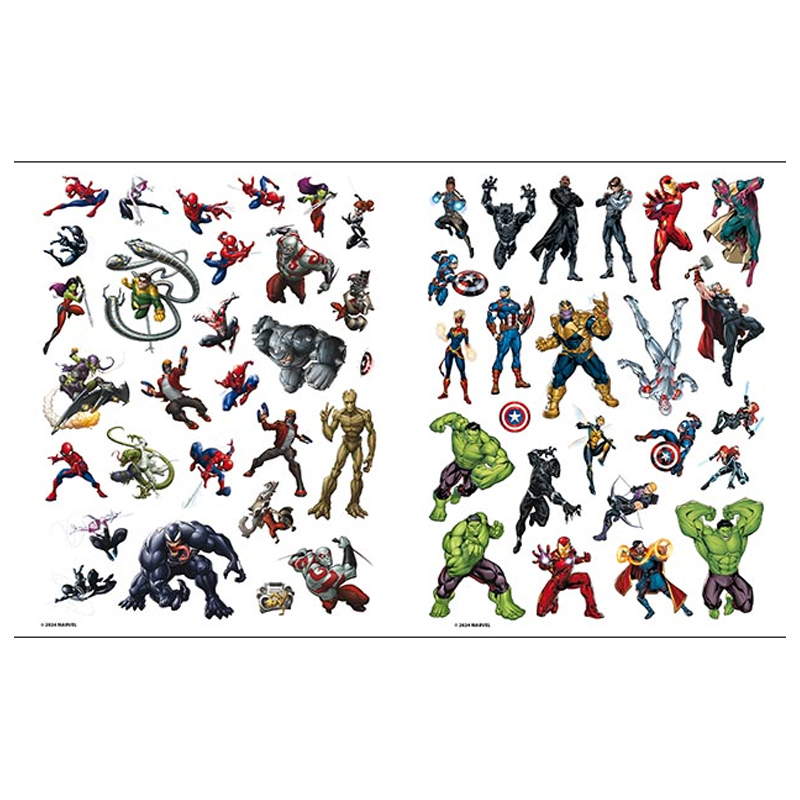 Maľovanky obsahujú 24 strán s veľkými farebnými obrázkami a viac než 20 samolepiek na dolepenie a ozdobenie. Motív: Marvel. Rozmer: 305 X 248 X 3 mm