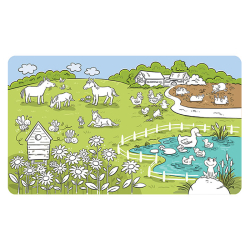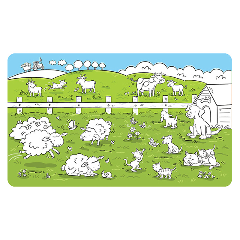 Vymaľovánka obsahuje 10 krásne farebných strán s obrázkami. Po aplikácii vody sa farba objaví a po zaschnutí opäť zmizne, obrázky je možné vďaka tomu maľovať opakovane. Pero na vodu je súčasťou balenia. Motív: Farma. Rozmer: 265 X 223 X 22 mm