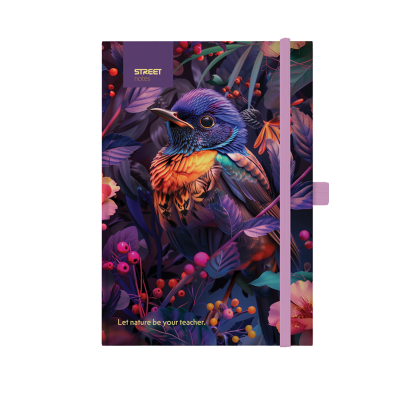 Zápisník formátu A5 má 96 listov, linkovaný. Zapínanie na gumičku. Rozmer: 14x21 cm.