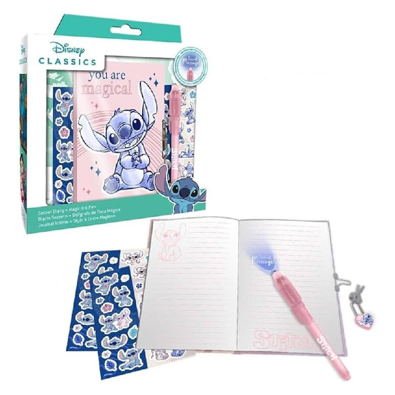 Zápisník linajkový so zámkom s magickým perom STITCH a 2 hárky samolepiek v darčekovom balení. Píšte svoje správy alebo čmáranice pomocou pera Magic Ink Pen. Bude to vyzerať, akoby nebolo nič napísané... Ale keď rozsvietite LED svetlo v hornej časti pera, odhalí vaše hlavné tajomstvá! K tomu všetkému je denník chránený zámkom a kľúčom. Nikto sa tam nedostane! Vhodné pre deti od 3 rokov. Rozmer balenia: 23,5x22x5 cm