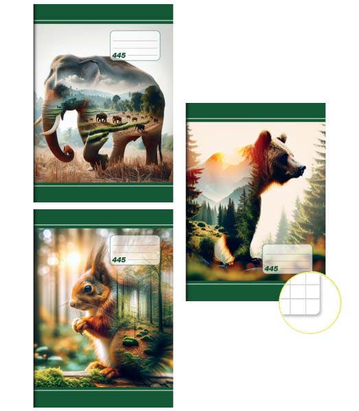 Školské zošity formát A4 z bezdrevného papiera, polotuhá väzba, 40 listov, štvorčeky 5x5 mm.